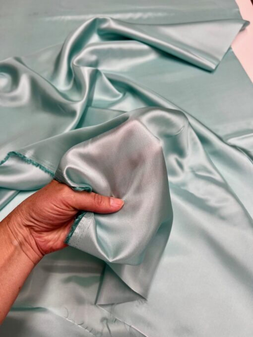 Doplňte své šicí projekty o dotek skutečného luxusu s touto lehkou viskózovou podšívkovinou v nádherném tyrkysově zeleném odstínu. Tato prémiová látka z italského módního domu (deadstock) je díky své jemnosti a vysoké kvalitě ideální volbou pro vypracování vnitřních částí oděvů, kde hraje prim pohodlí a prodyšnost. Podšívka má ideální gramáž 90 g/m², což ji činí lehkou a splývavou, ale zároveň dostatečně pevnou, aby zajistila perfektní tvar a ochranu vašich modelů. Je nepostradatelná do buklé kabátků ve stylu Chanel, elegantních sak, ale i do vlněných kalhot či sukní. Díky tomu, že je vyrobena ze 100% viskózy, je neobyčejně příjemná na dotek, nechladí a nezpůsobuje nepříjemné pocení, což oceníte zejména u vypasovaných kousků.